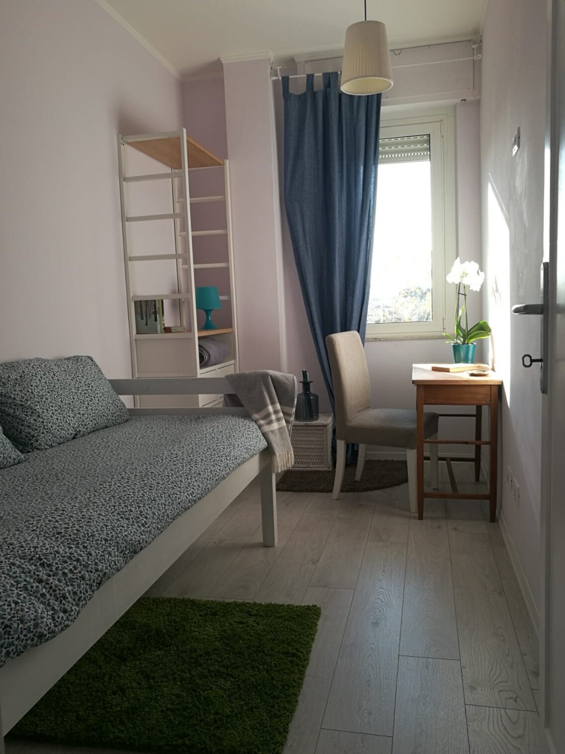 Окруженный южной частью, он очень светлый, а в летний сезон дует приятный морской бриз, который охлаждает весь дом. Его окно имеет автоматические рольставни. В одноместном номере, рассчитанном как на взрослого, так и на мальчика, есть деревянная кровать, которая также может быть удобным диваном, прозрачная конструкция вешалок с полками и ящиками, письменный стол в качестве рабочего места. При размещении одного человека в нем есть удобные пространства.